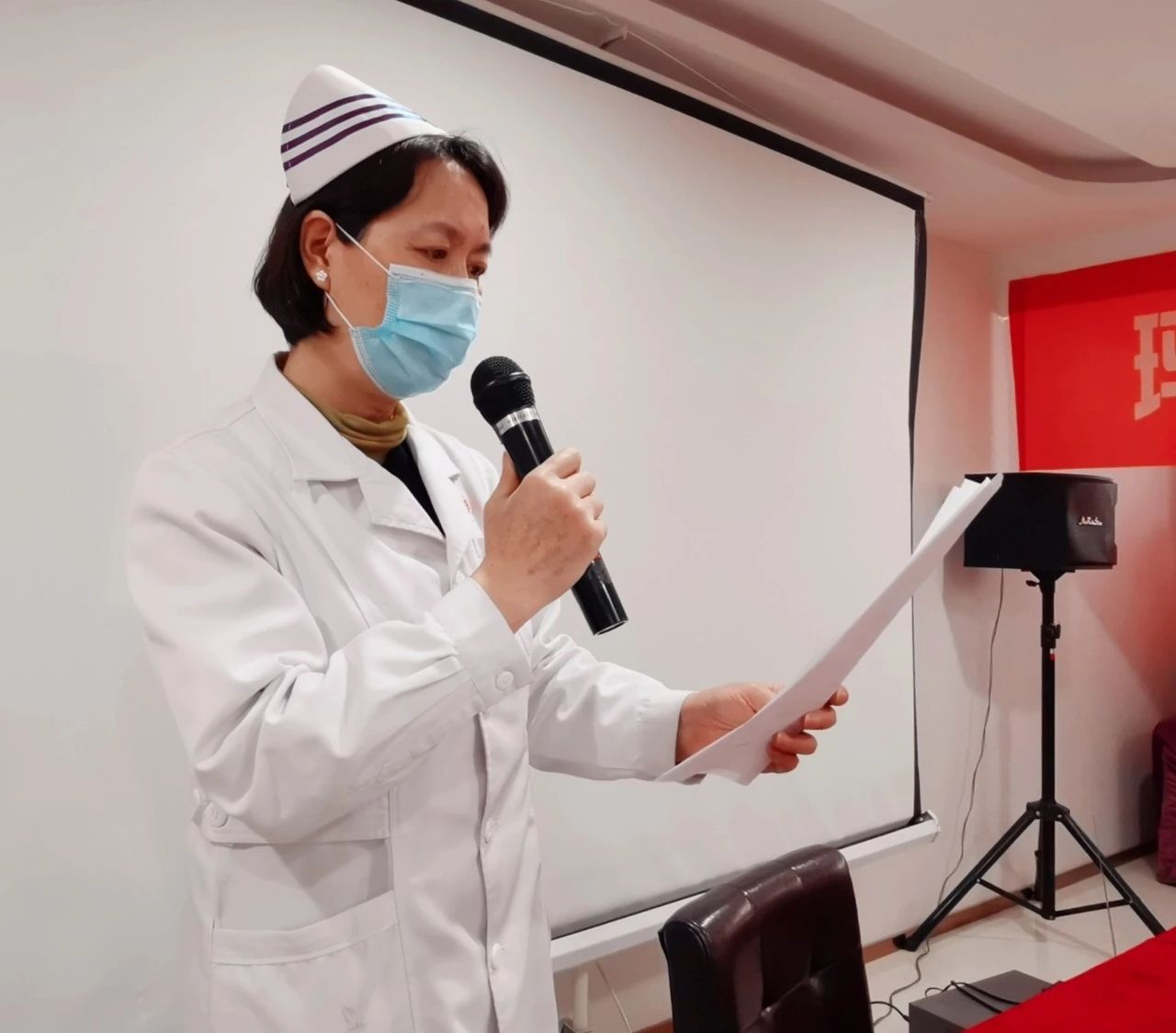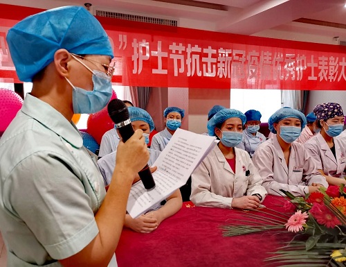 护理部李国蓉主任对本次5.12护士主题活动进行了全面总结,护士代表杨倩与参会的护士们分享了她参加医院抗击疫情工作的体会和认识。