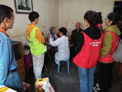 2020年10月25日,九九重阳节,浓浓敬老情。为进一步弘扬尊老美德,积极倡导互助友爱的社会主义核心价值观,保障社区困难家庭老人、空巢老人的身体健康。在重阳节之际,玛丽亚医疗志愿服务队和正宁路社区领导一行,走街串巷,爬楼梯、入户为社区困难家庭老人测量血压,进行保健咨询、心理疏导,并为她们送去慰问品(米、面、油)等,让孤寡和空巢老人度过一个健康、祥和、快乐的节日。