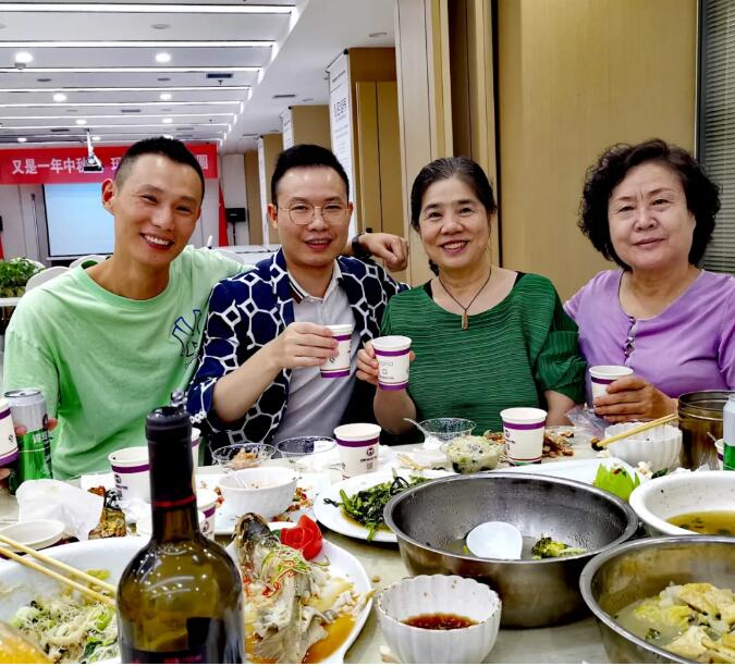 色、香、味俱全的“大餐”摆满了餐桌,大家在欢声笑语中,一边品味美味的佳肴,一边畅谈。晚餐之后,玛丽亚家人开始了联谊活动,黄总一曲大家耳熟能详的《爱拼才会赢》将气氛带动起来,现场更有老专家伴舞,歌唱;踩气球、抢凳子游戏更是将欢乐氛围带入了高潮,加油声、欢笑声不断,现场一片温馨、祥和。